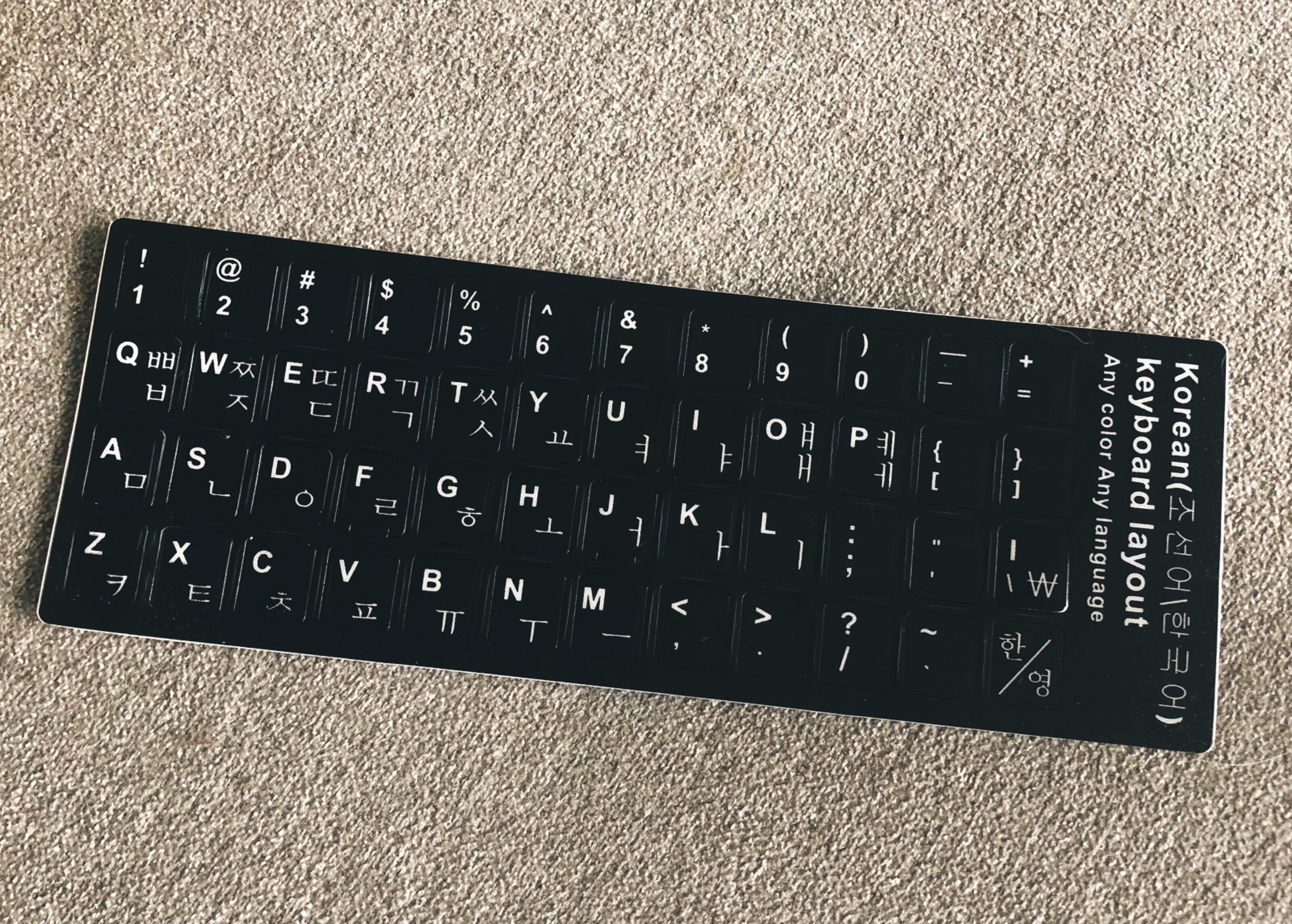 Hôm nay đã mua được sticker với bàn phím tiếng Hàn để có thể tra từ điển hay học tiếng Hàn trên máy tính nhiều hơn. Bình thường mình dùng điện thoại thấy cũng tiện nhưng đợt này đang muốn hạn chế sử dụng điện thoại (màn hình máy tính dù sao cũng vẫn to hơn) nên mình đã nhờ chồng mua cho tấm phủ bàn phím bằng silicon có bàn phím tiếng Hàn, còn trong lúc chờ tấm phủ về đến nhà thì mua tạm sticker dán lên. Bộ sticker mình mua trên Tiki hết mấy chục nghìn thôi, không phải đẹp long lanh nhưng cũng tàm tạm. Các bạn có thể google với từ khoá là bàn phím tiếng Hàn nhé. Hì hụi dán xong cảm giác vui ghê 😀