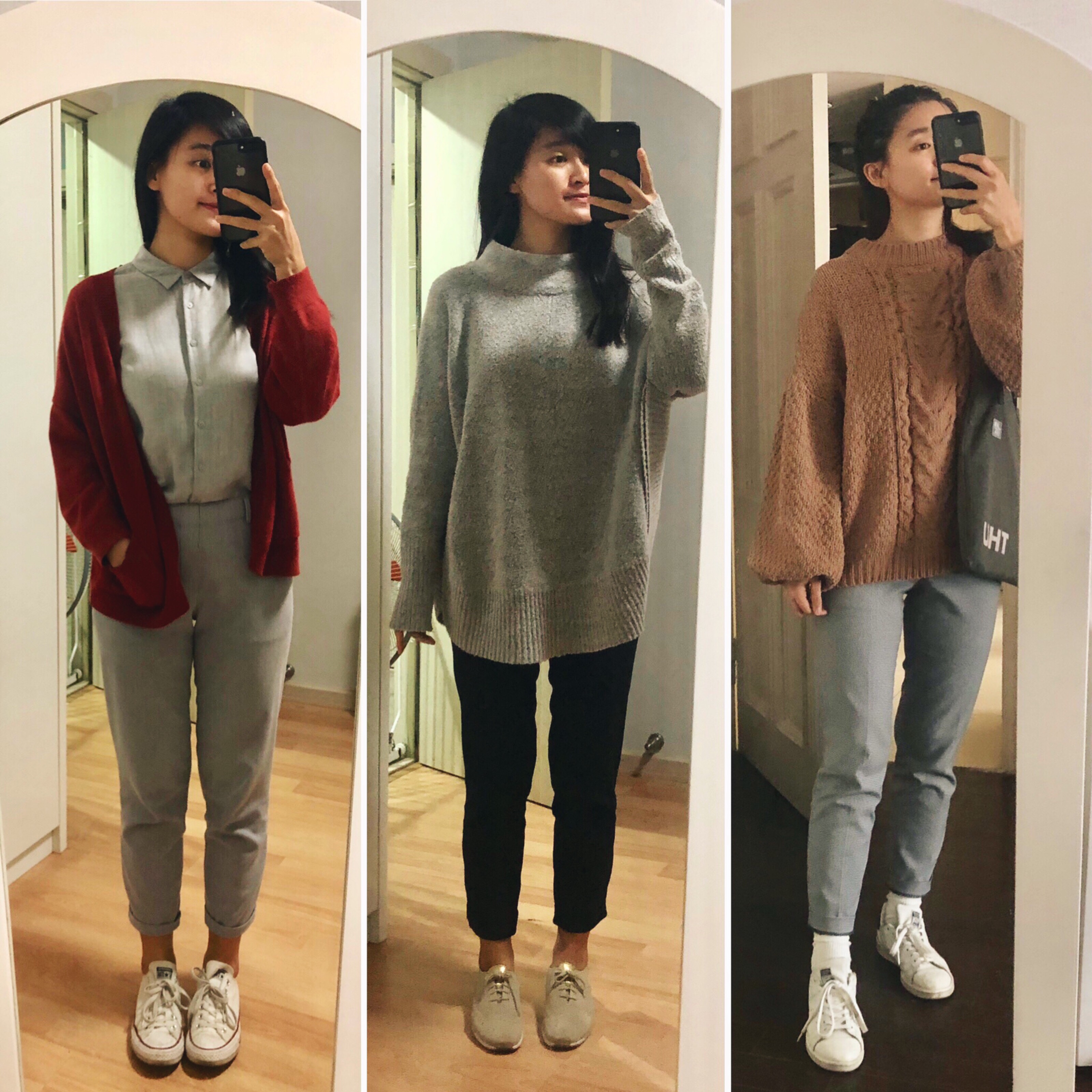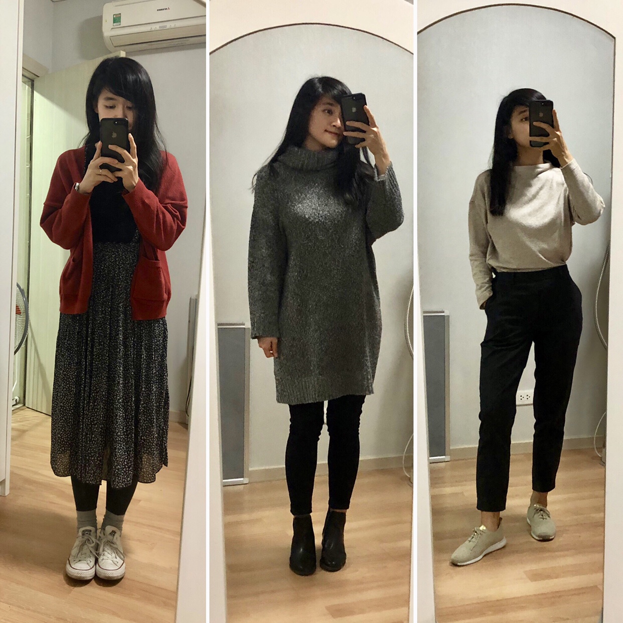 Trong khi đó một số item mình lại không có hoặc không có đủ cho việc sử dụng. Ví dụ mình chỉ có 2 áo cardigan và 1 áo thì ống tay áo lại khá bó nên ko mặc được với áo dài tay bên trong (chỉ phù hợp khoác ngoài áo phông, áo hai dây), trong khi mùa thu đông ở Việt Nam rất thường xuyên mặc áo cardigan. Vì thế đợt Tết về nhà mình đã xin của mẹ một chiếc áo mà mẹ không còn mặc :”> Một thứ nữa mình không có là một chiếc váy lịch sự mặc vào mùa đông. Cơ mà giờ cũng sắp hết mùa đông rồi và những dịp để mặc váy như vậy không có nhiều nên mình cũng không cảm thấy cần sắm thêm.